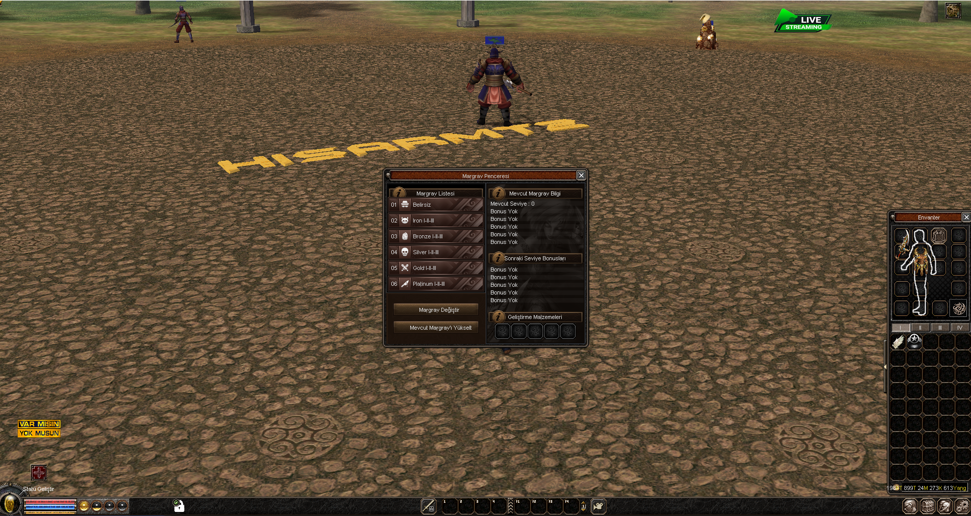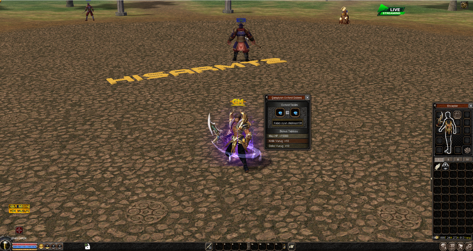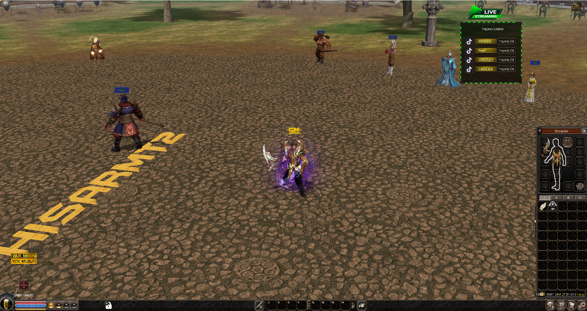 Bu bölüm, oyuncuların grup kurdukları veya etkinlik düzenledikleri “Var Mısın? Yok Musun?” kanalını gösterir. Sohbet penceresinin üstünde, “etkinlik adı” ve “katılım kriterleri” bilgisi yer alır. Alt kısımda, katılmak isteyen oyuncuların isimleri ve “evet” / “hayır” butonları listelenir. Katılımcı sayısına göre otomatik olarak formasyon önerileri de yan panelde sunulur.
